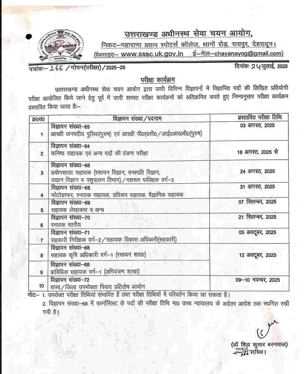 परीक्षा कार्यक्रम में शामिल हैं ये अहम भर्तियां UKSSSC new EXAM CALENDAR 2025