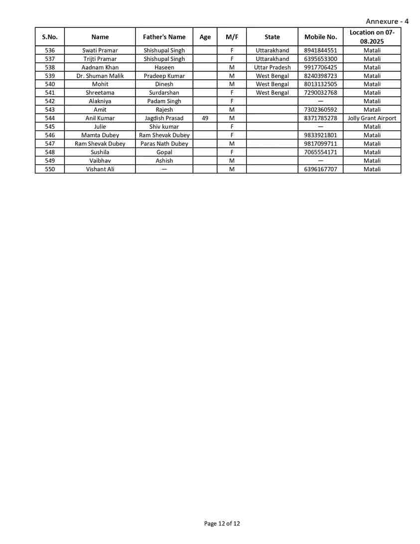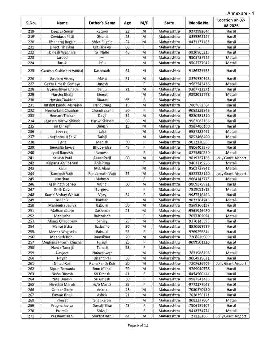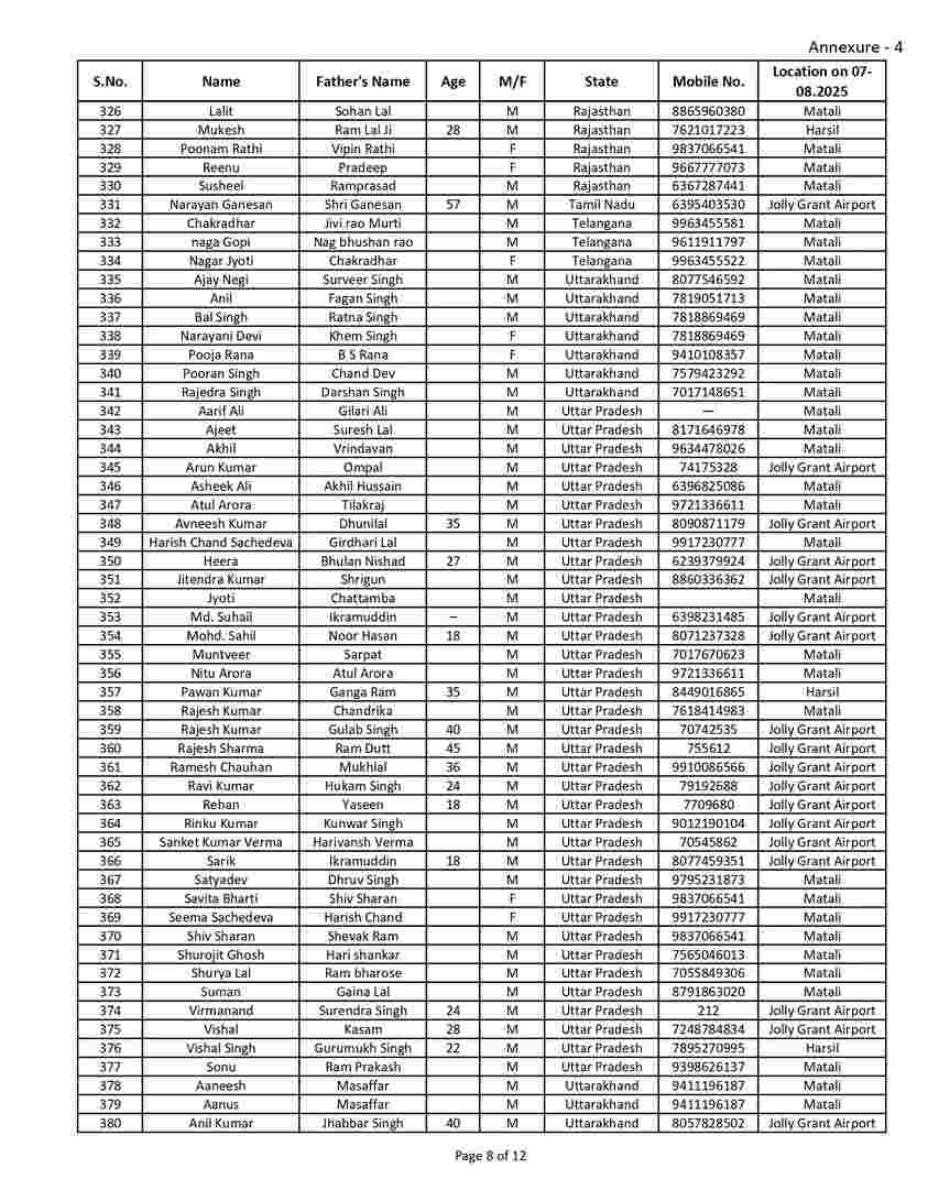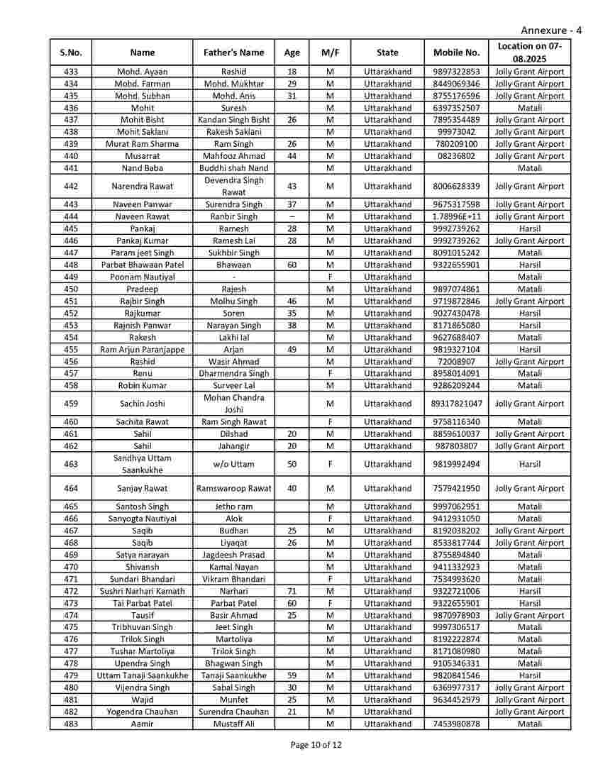 उत्तराखण्ड आपदा प्राधिकरण ने जारी की सूची: राज्य आपदा प्रबंधन प्राधिकरण द्वारा जारी प्रेस विज्ञप्ति में बताया गया है कि दिनांक 07 अगस्त 2025 को हर्षिल क्षेत्र से कुल 550 यात्रियों को सुरक्षित स्थानों पर पहुँचाया गया। इनमें से 260 यात्रियों को मातली, 112 को जौलीग्रांट लाया गया, जबकि शेष यात्रियों को गंगोत्री, भैरवघाटी आदि क्षेत्रों से रेस्क्यू कर सुरक्षित स्थानों पर भेजा गया। प्राधिकरण द्वारा 7 अगस्त को रेस्क्यू किए गए सभी लोगों की सूची जारी कर दी है।