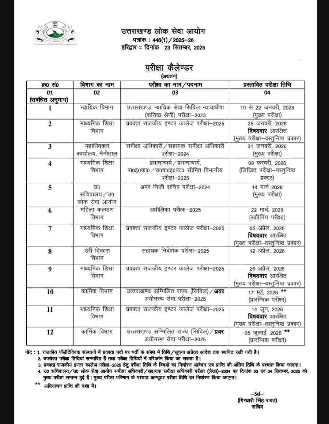 ukpsc new exam calendar for 2026 of 12 bharti uttarakhand latest news today: उत्तराखण्ड लोक सेवा आयोग ने घोषित किया 2026 का परीक्षा कैलेंडर, जनवरी से जुलाई के बीच आयोजित होगी 12 परीक्षाएं….