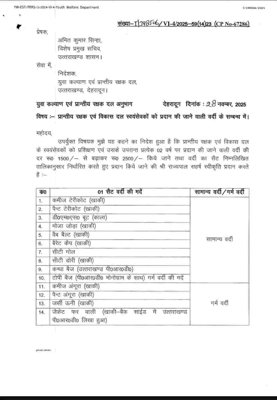 Uniform allowance of PRD jawan increased, now they will get Rs 2500, GO issued uttarakhand latest news today: पीआरडी जवानों के वर्दी भत्ते में बढ़ोतरी—अब मिलेंगे 2500 रुपये, शासनादेश जारी