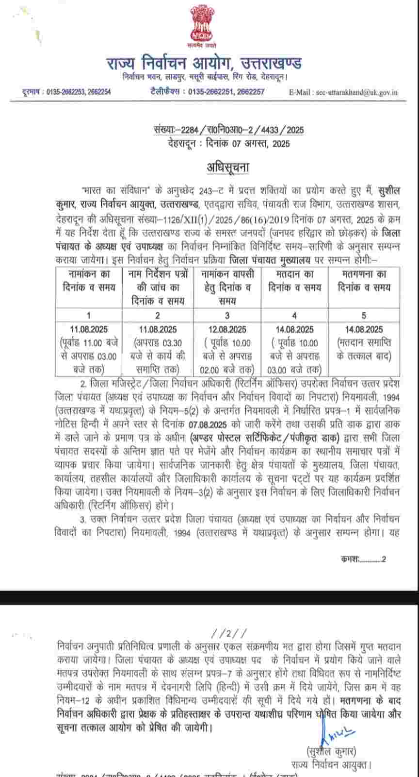1. नामांकन तिथि: 11 अगस्त 2025 पूर्वाह्न 11 बजे से अपराह्न 3 बजे तक।