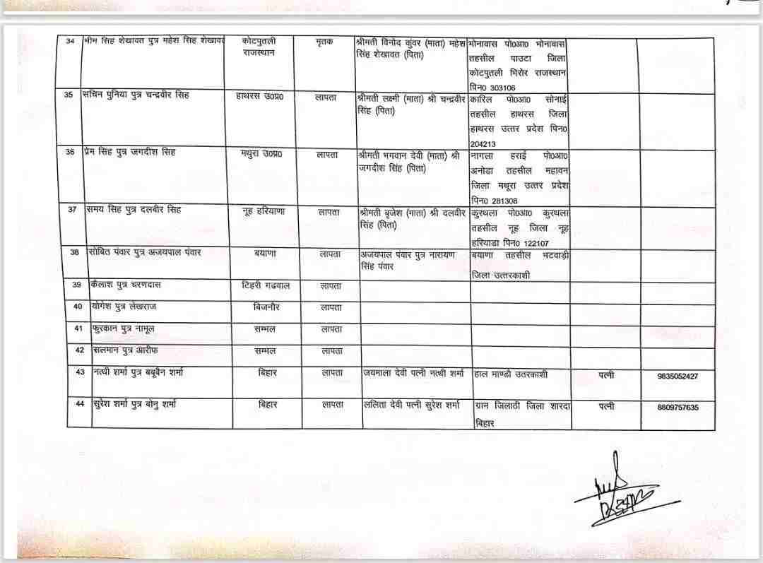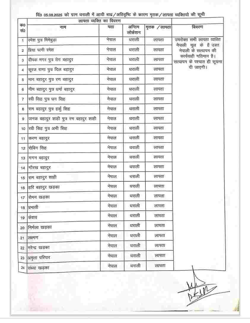 Dharali disaster missing list: उत्तरकाशी प्रशासन ने जारी की धराली में लापता 66 लोगों की सूची